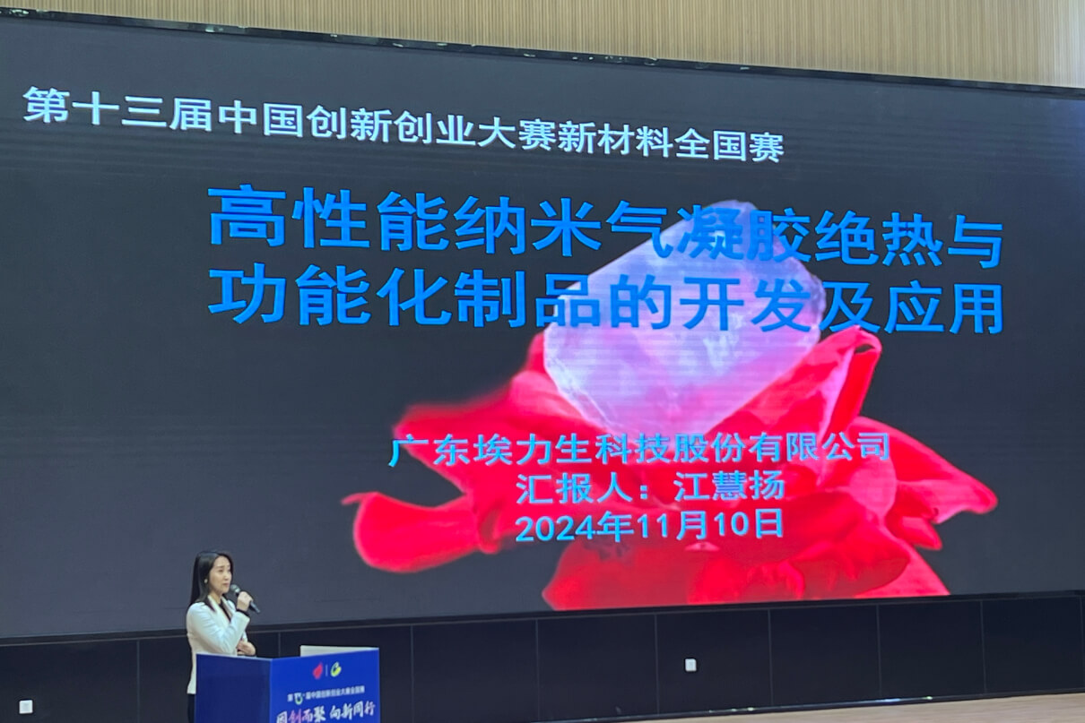 埃力生技术总工张秋华代表公司参与路演比拼与出席颁奖活动,并进行了获奖企业代表发言,她表示:“衷心地感谢大赛为我们提供的这一宝贵平台,让我们有机会分享项目、分享创新,感谢每一位评审专家的专业指导与工作人员的默默付出,感谢我们团队的领导及成员的一路陪伴,这些都将化为埃力生对气凝胶产业科技创新的无限热爱与执着追求”。